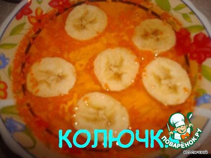 заливаем смесью.Сметану смешиваем с пудрой корицей ванилью и растворяем стаканом горячей воды с разбавленным желатином.
