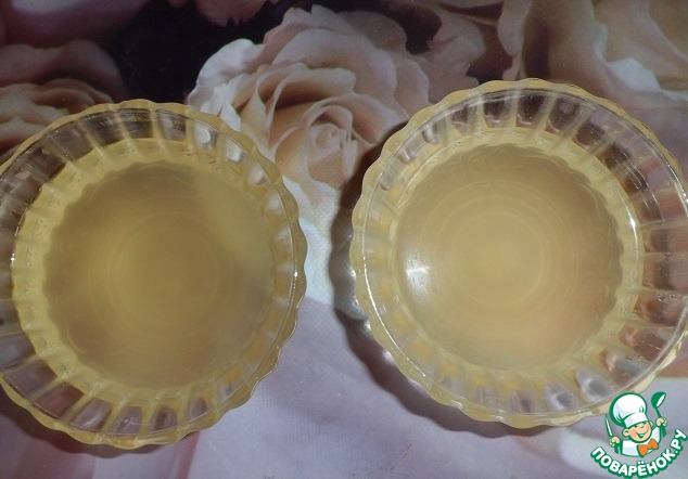 Разливаем будущее желе в емкости (желательно похожие на мои). Убираем в холод на пару часов.
