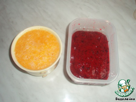 Так поступить со всеми пюрешками. Все слои я ставила застывать в морозилку.