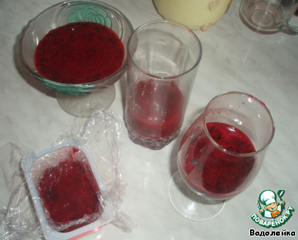 Разложить пюре в подготовленные прозрачные стаканы, креманки, формочки и поставить в холодильник застывать. Я ставила в морозилку.
