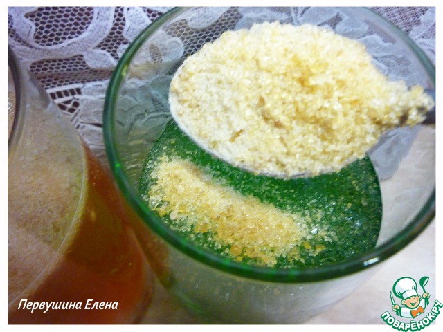 Положить по 2 ч. л. желатина в каждый стакан с жидкостью и оставить на 50-60 минут. Пару раз помешать.