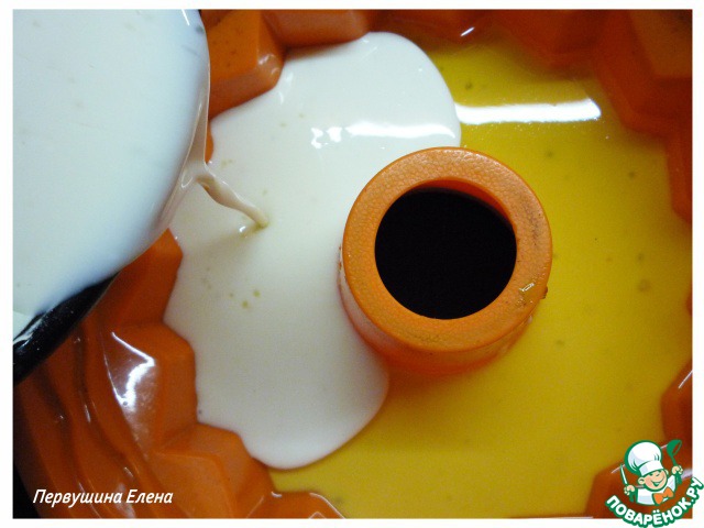 И так же слои с апельсиновым соком и снова со сметанной жидкостью.