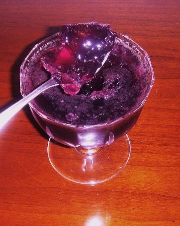 Готовое желе получается очень нежным и не слишком сладким. Несмотря на то, что отвар дважды процеживался, на дне формочек образуется слой из остатков ягодной мякоти, больше напоминающий мусс. Очень вкусно и необычно.