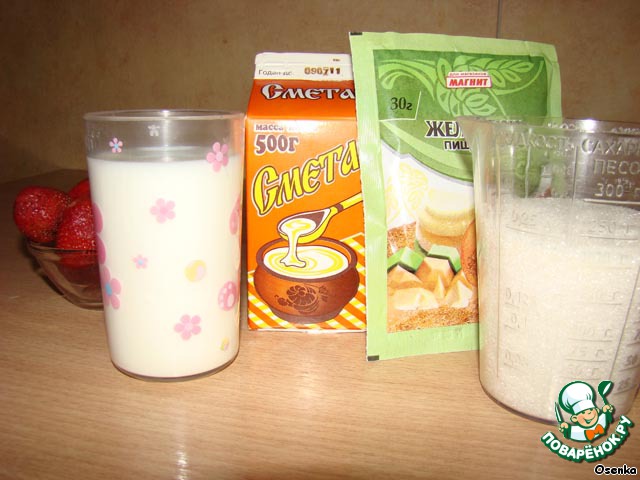 | Нежный десерт-желе из сметаны, молока и сахара. Рецепт очень простой, возможно, не совсем классический, но очень вкусный. С ним можно фантазировать и добавлять в него всe, что вам нравится – фрукты, орехи, шоколад и т. д. |