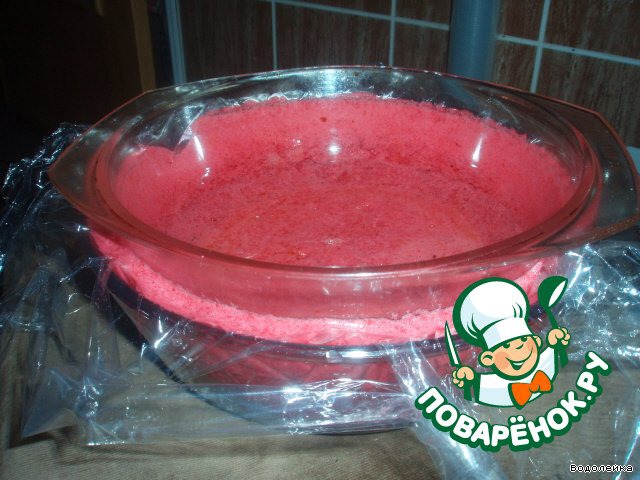Наша "тарелка" из вишневого пюре уже застыла. Влить в маленькую емкость немного горячей воды на минутку и осторожно ее вытащить.