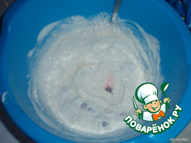 Оставшиеся вишни (100 г) и творог хорошо перемешать + кокосовая стружка,