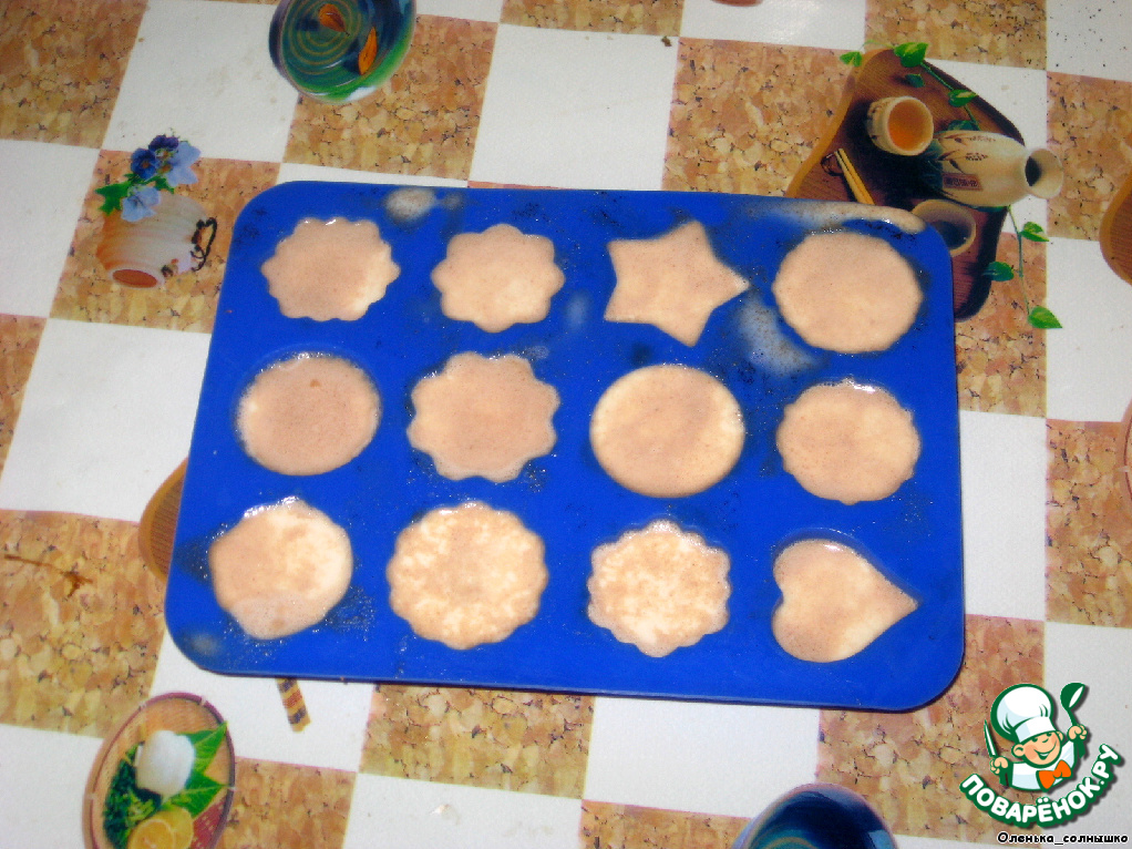 Рекомендовалось разлить по маленьким формочкам, я так и поступила, но у меня хватило смеси еще на 5 стандартных формочек для кексов. Поставить в холодильник до застывания (у меня застыло минут за 40, желатина больше не добавлять, иначе потеряется вся нежность).