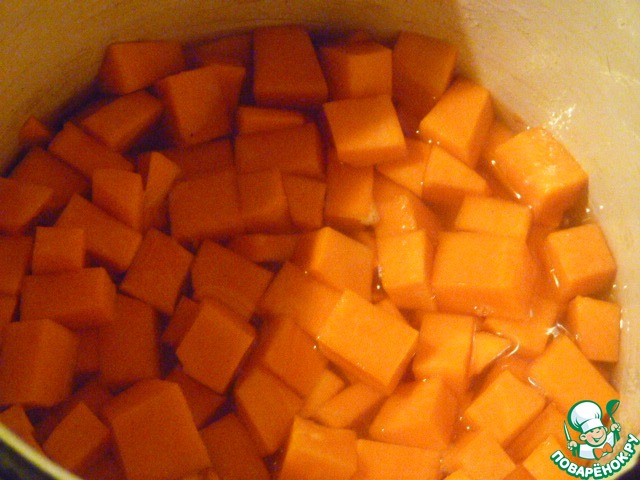 Тыкву откинуть на сито, чтобы отвар полностью стек.