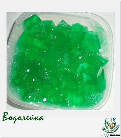 Ну и зеленое желе - изумруды. К сожалению, залитое желе я не сфотографировала, забыла.