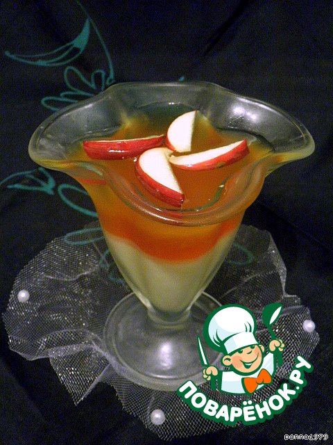 | Началось все довольно прозаически. У меня остался сироп от абрикосов в собственном соку - для питья слишком насыщенный вкус, а вылить такую вкусняшку рука не поднимется. Пришла идея сделать желе, но просто добавить желатин не интересно. Значится, проводим инвентаризацию холодильника и приступаем... А что, очень неплохой десерт для романтического вечера получился, да и про детишек не забыли. |
