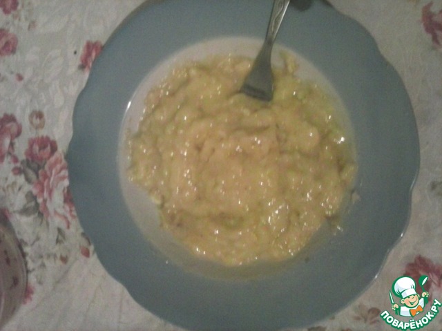К сметане добавить банановое пюре и остывший желатин~хорошо перемешать.