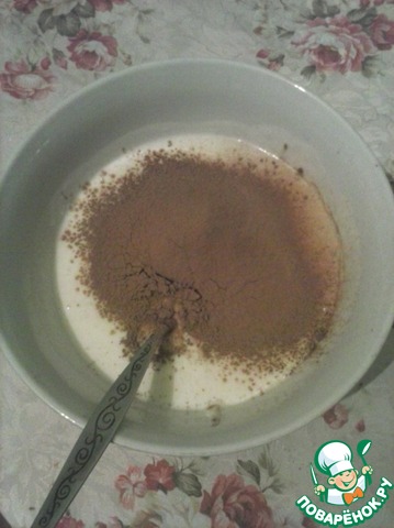 Разделить желе на две части. В одну часть добавить какао~хорошо перемешать.