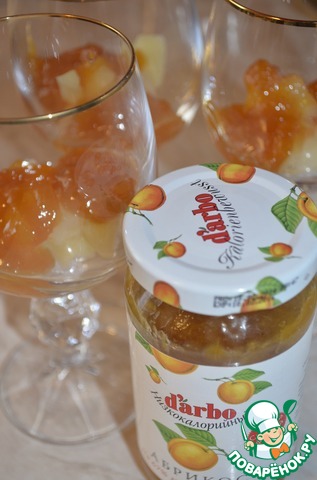 В бокалы выложить кусочки ананасов полить из низкокалорийным конфитюром «Darbo» абрикосовый.