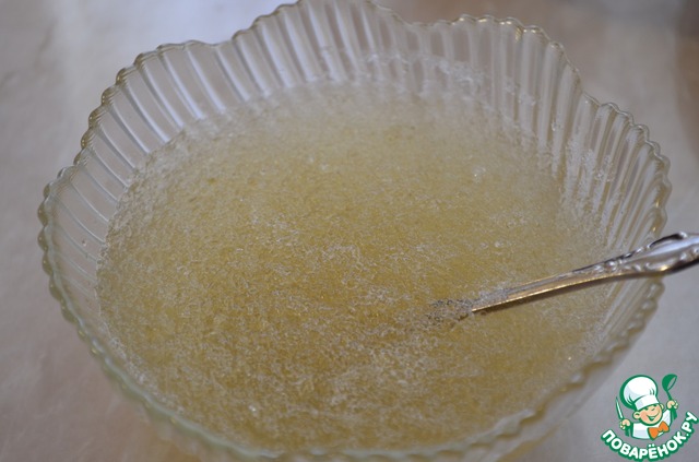 Когда желатин набухнет, переложить его в металлический сотейник или кастрюльку, залить чаем. Добавить корицу, имбирь, мускатный орех и мед. Хорошо нагреть, но не кипятить. После чего разлить по бокалам и убрать в холодильник для застывания.