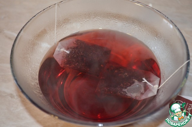 Далее нам потребуется 600 мл кипятка в котором заварить два пакетика чая каркаде.