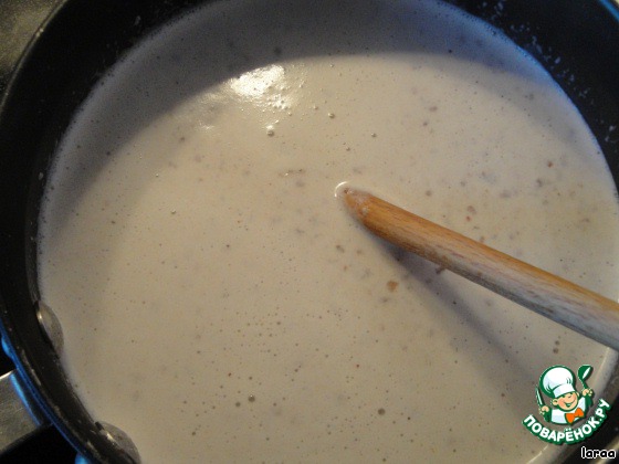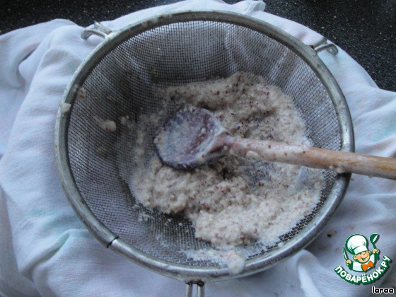 Снять с огня и процедить через сито и затем через ткань. Остатки миндаля оставить в стороне.