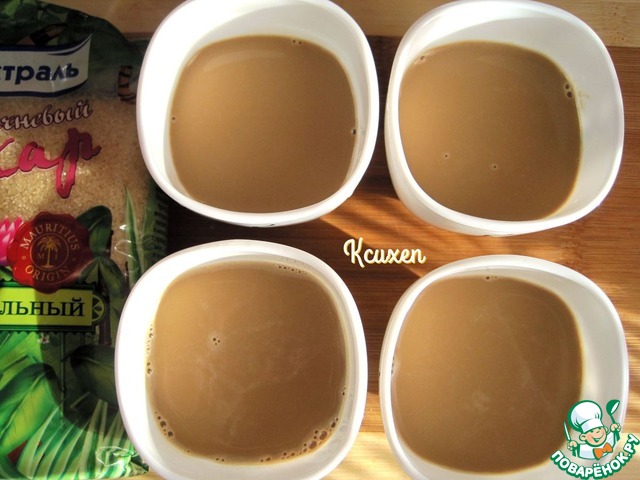 Разливаем по формочкам или, как в моём случае, по чашечкам. Даём остыть, накрываем плёнкой и убираем в холодильник на несколько часов до полного застывания.
