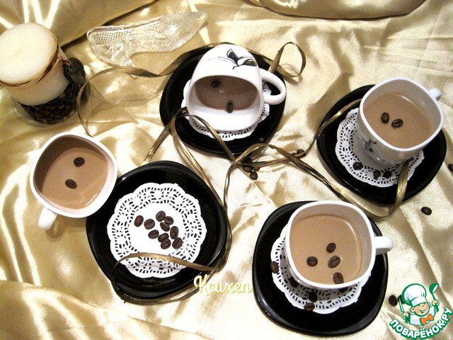 В небольшом сотейнике смешиваем горячий Эспрессо, сливки и сахар. Прогреваем до полного растворения сахара (не кипятим). Снимаем сотейник с огня, добавляем к кофейно-сливочной смеси подготовленный желатин, перемешиваем, процеживаем через сито.