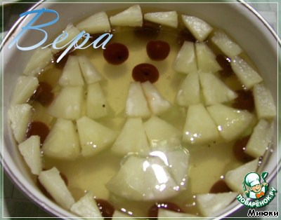 С ананасов и персиков слить сок, нам понадобится по стакану.