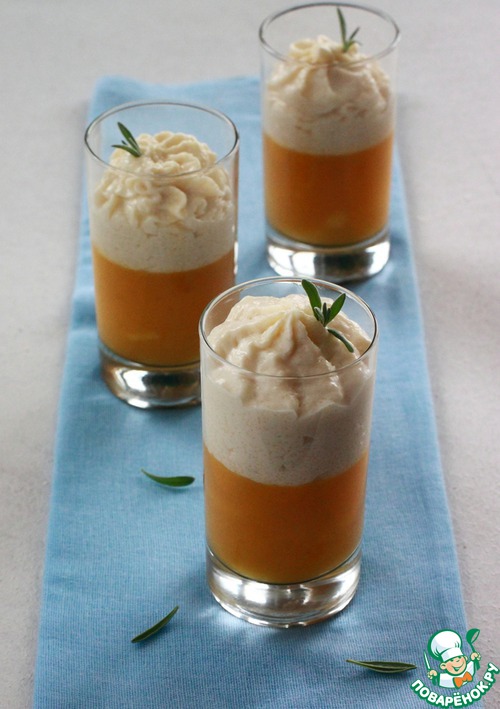 Взбить очень холодные жирные сливки и добавить в остывшую кашу, аккуратно перемешать складывающими движениями. Крем готов. Теперь его можно переложить в кондитерский мешок и украсить стаканчики с манговым пюре или просто аккуратно выложить ложкой.