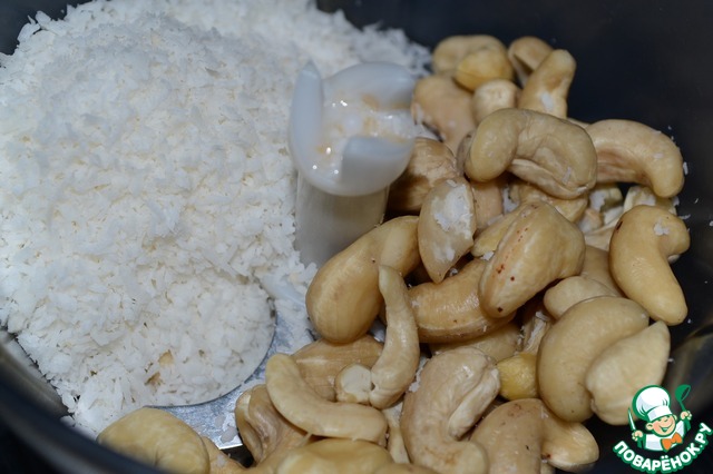 Измельченные курагу, джем, орехи и стружку перемешать.