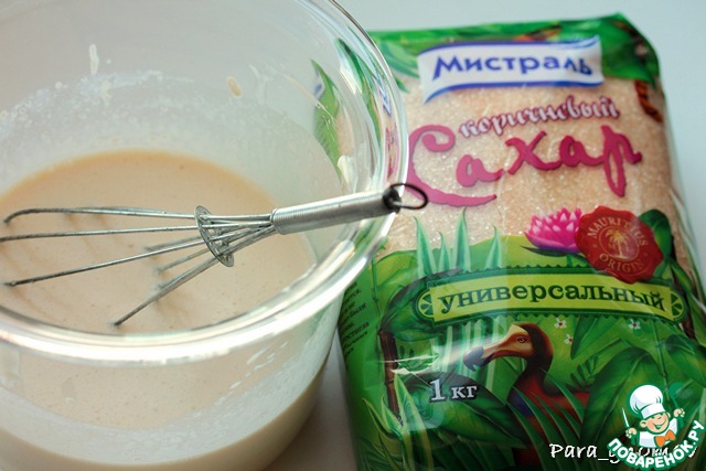 4. Соединить сливки, яичный желток и коричневый сахар. Немного взбить венчиком.