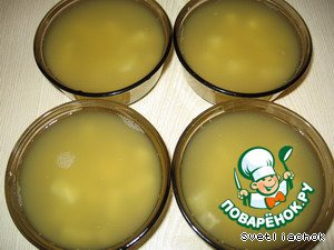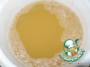 Затем ставим миску с желатином на огонь и, не доводя до кипения, растворяем желатин в соке. Доливаем оставшийся сок.
