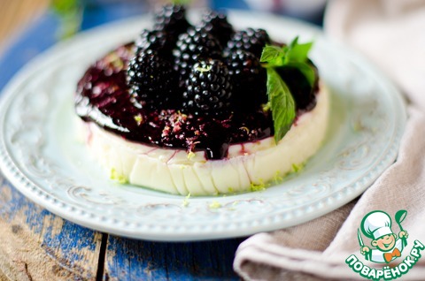 Готовый десерт полить ежевичным соусом, украсить ягодами ежевики, цедрой лайма и мятой.
