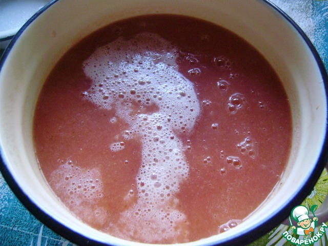 Когда яблоки с клубникой сварились взбиваем блендером.