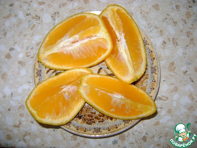 Можно для дальнейшего удобства апельсин нарезать и помельче.