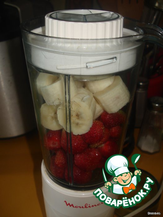 А можно еще попроще сделать: все ингредиенты уложить в блендер и взбить. Получается тоже очень вкусно и красиво.