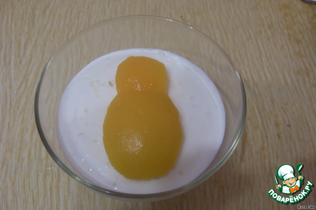 На застывшый творог выкладываем дольку персика (туловище пчелки)