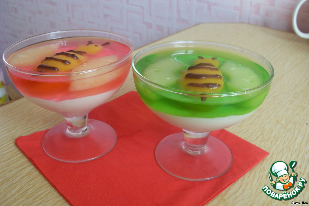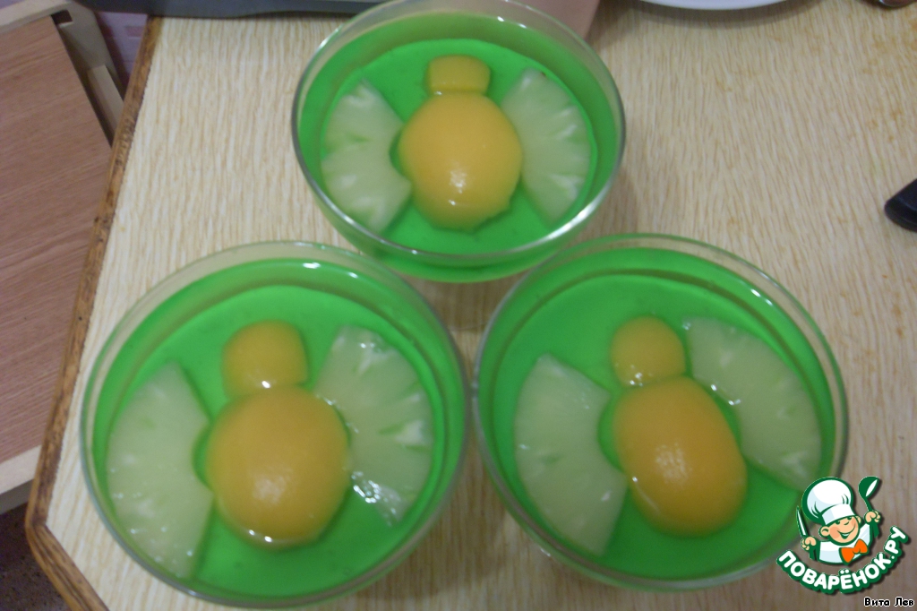 И разводим желе в 300 мл воды. Можно компот и желатин, так даже лучше.