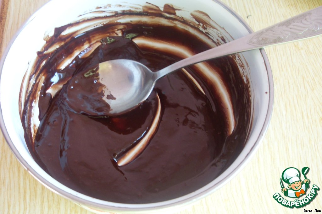 Когда желе застыло, растапливаем шоколад на водяной бане и чуть охлаждаем.