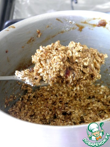 Снять с огня и всыпать молотую овсянку. Перемешать.