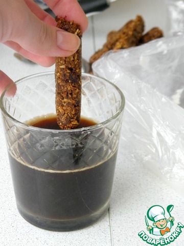 «Пальчики» окунаем в кофе и выкладываем в формочку.