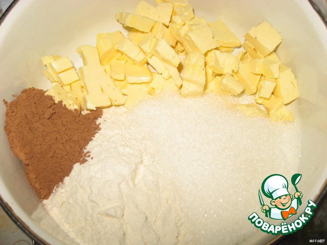Смешиваем ингредиенты для штрейзеля, мнем руками, чтобы получилась крошка, по необходимости добавить еще муки, если будет чувствоваться "жирность" на руках.