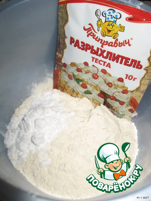 Смешиваем в миске сухие продукты: муку, крахмал, разрыхлитель, ванильный сахар.