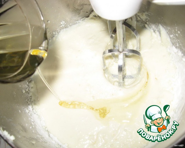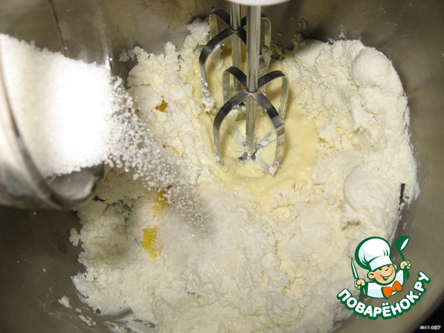 100 гр размягченного масла растираем с 2-мя яйцами и 2/3 стак.сахара.