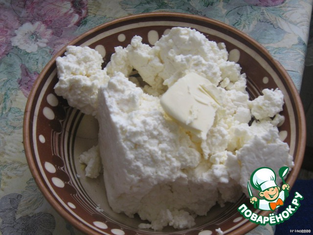 Творог с маленьким кусочком масла разогреть в микроволновке (примерно минуту).