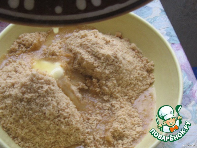 Печенье пропустить через мясорубку или размолоть в комбайне.