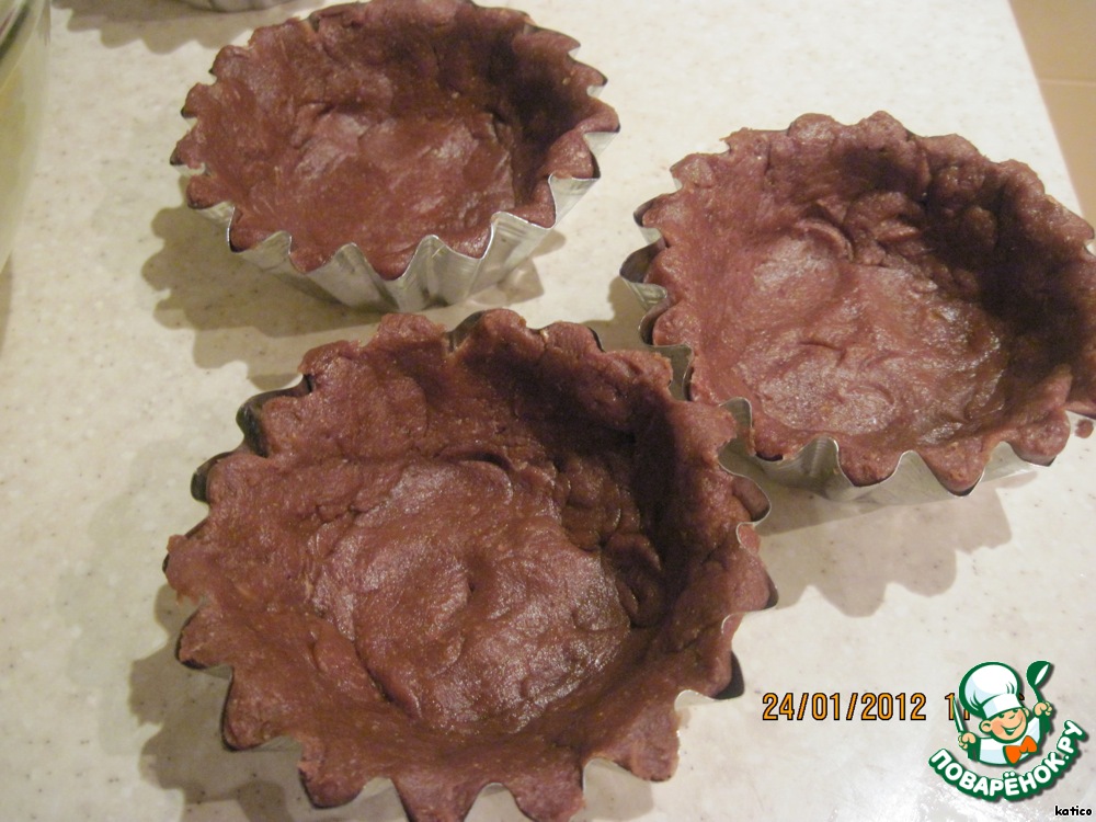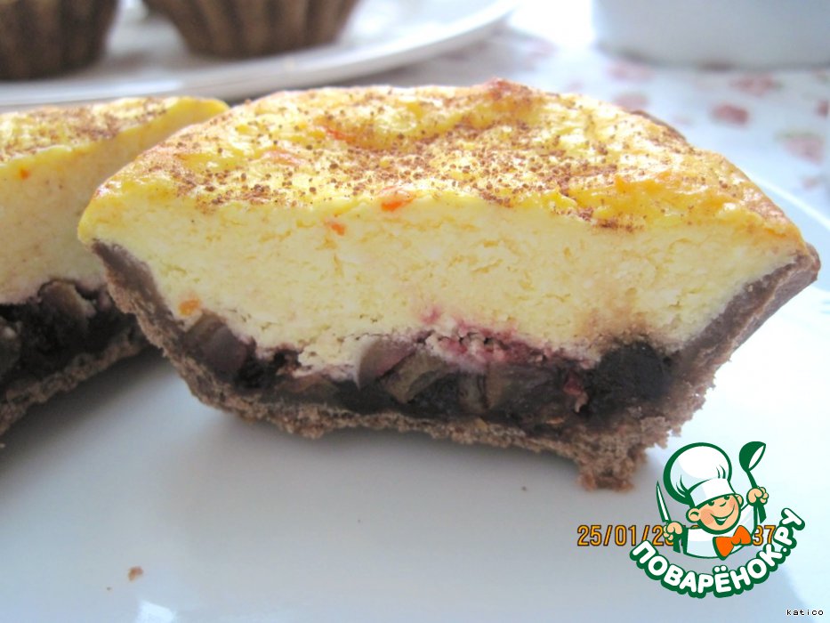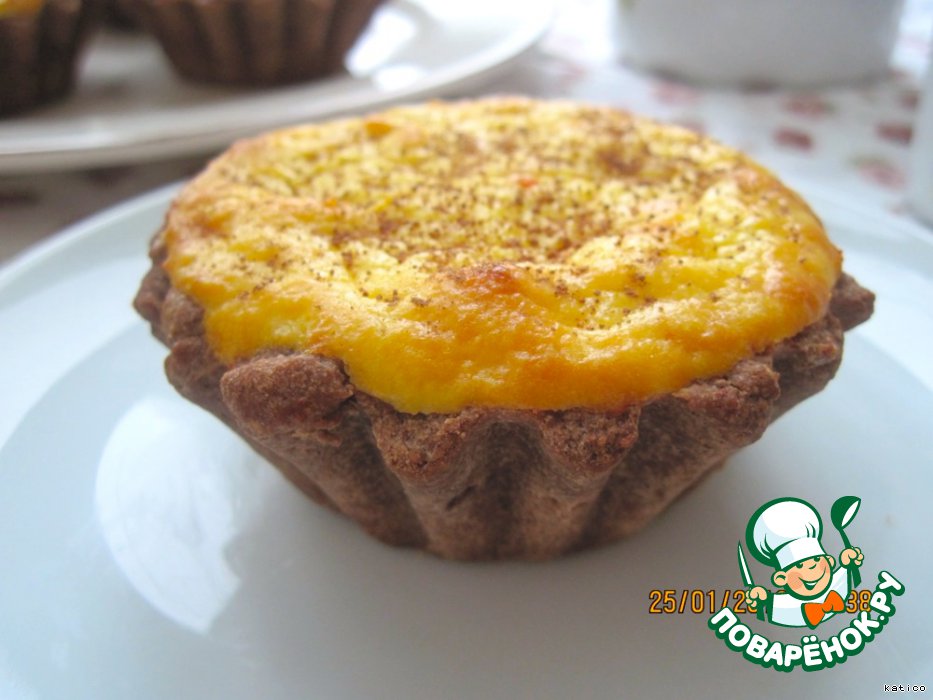 | Очень вкусные нежные корзиночки из шоколадного теста, заполненные ароматной творожной массой с прослойкой из варенья и сухофруктов, с легким ароматом пряных специй. Очень хороши к чаю, кофе, удобны, чтобы брать с собой. |