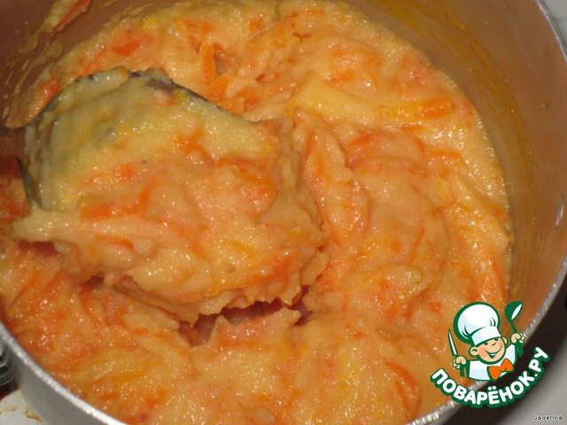 Затем добавить остывшую морковную кашу и еще раз хорошо вымешать.