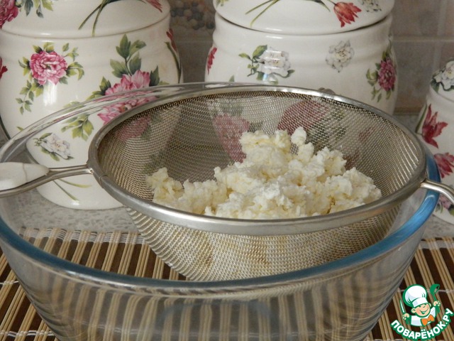 У меня был домашний творог. После того, как протерла его через сито, он стал нежным, мягким.