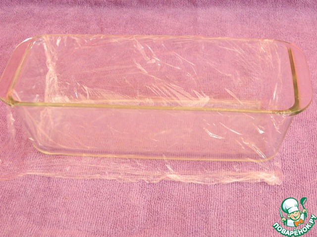 Приготовить форму. Чтобы торт легче было достать, застелить форму пищевой пленкой или фольгой так, чтобы края свисали с бортиков формы.