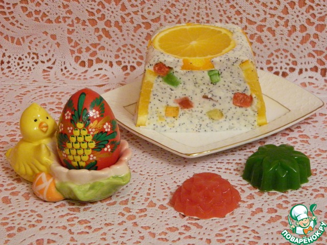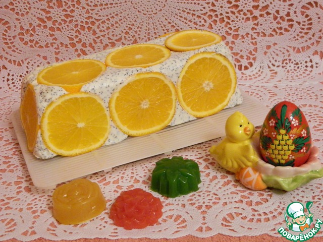 | Этот творожный десерт - хорошая альтернатива пасхе, он без яиц. На Пасху по традиции многие навещают своих родителей. Если Вы хотите привезти пасху в качестве гостинца, в дороге она может растаять из за наличия в ней масла. Тогда сделайте этот торт, он украсит любой праздничный стол, в том числе и пасхальный. Апельсины придают десерту приятную кислинку. Попробуйте, это очень вкусно! Рекомендую этот десерт и детям, которые плохо кушают творог. Такой десерт они будут уплетать за обе щеки. Творог, сметана, желатин - основные составляющие этого десерта, все это полезно для детского организма. |