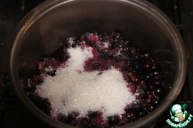 Черную смородину помыть, дать воде стечь, высыпать в кастрюльку, добавить сахар,