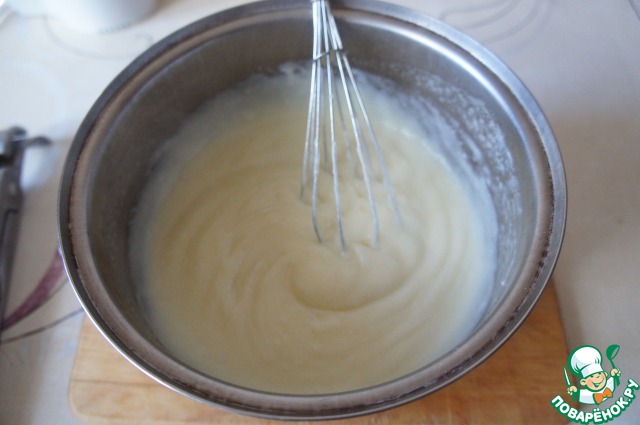 Поставить на маленький огонь и сварить заварной крем, постоянно помешивая, до загустения. Охладить, периодически перемешивая крем, чтобы не образовалась пленочка. Для ускорения процесса можно поставить кастрюльку в тазик с холодной водой. Вот и готов наш заварной крем.