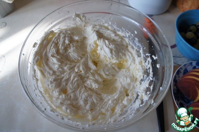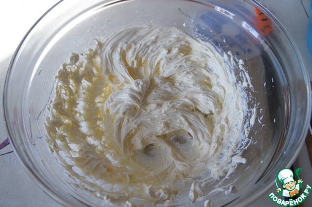 Отдельно чуть взбить Маскарпоне и аккуратно соединить со сливками.