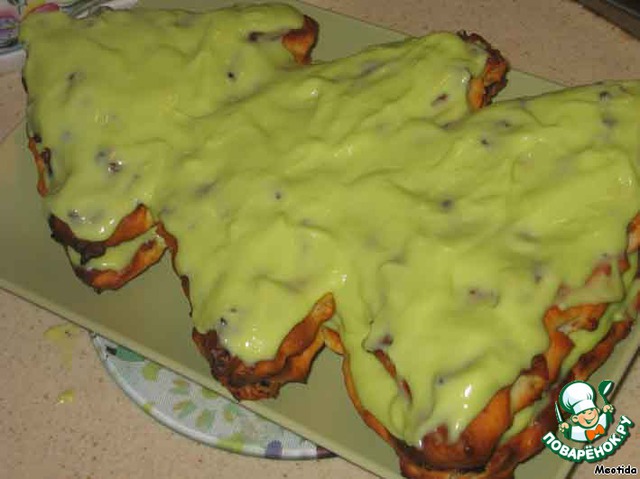 одну елочку выкладываем на блюдо, смазываем половиной крема